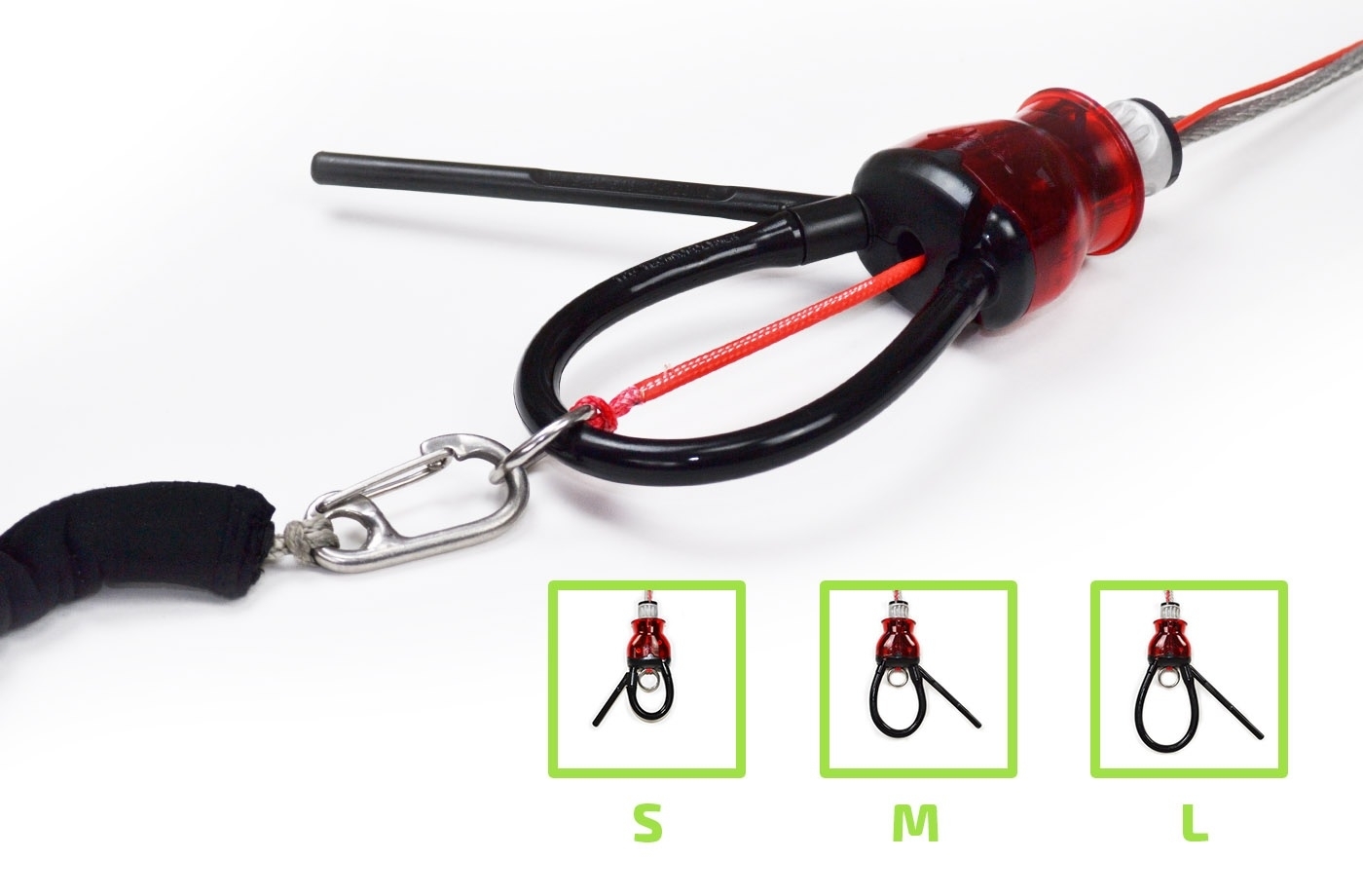 Gracias a sus opciones de ajuste de las líneas traseras, la barra se adapta en un instante a todos los tamaños de cometas.